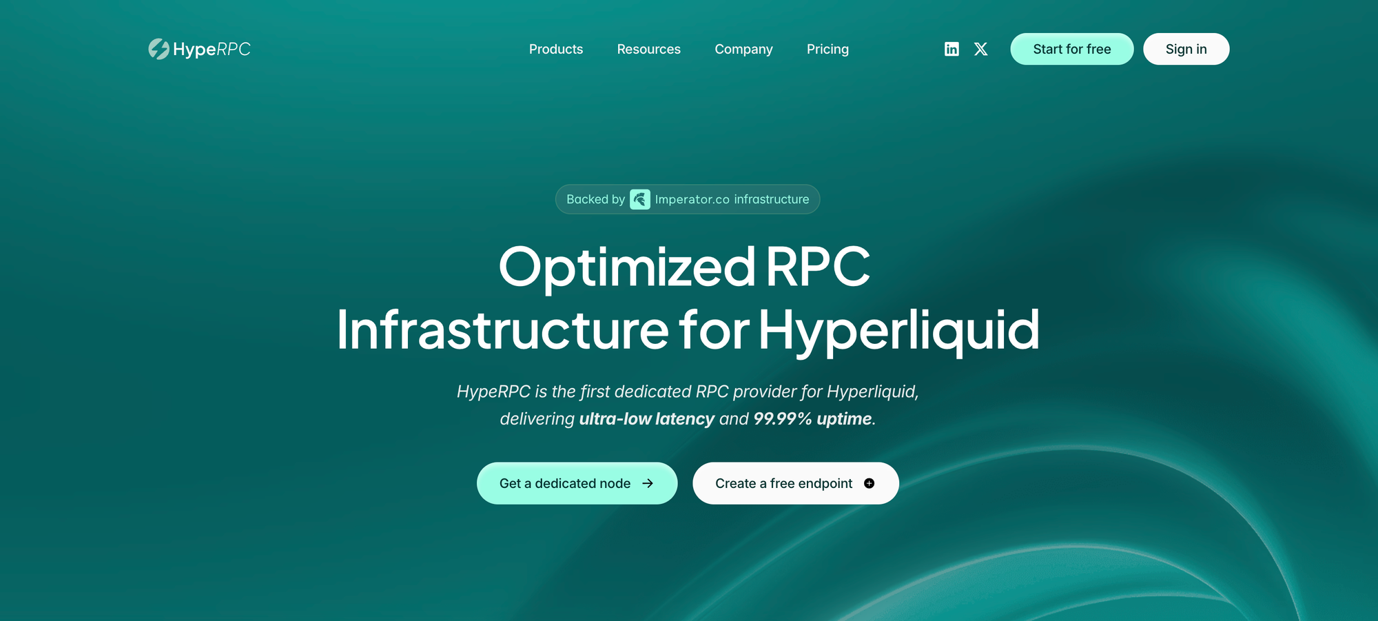 HypeRPC is operated by Imperator.co, a multi-chain validator operator. It launched on March 20, 2025. Currently focused on HyperEVM (HyperCore L1 support is under active development), HypeRPC differentiates through validator-backed infrastructure co-located near Hyperliquid validators, with servers in EU and Japan.