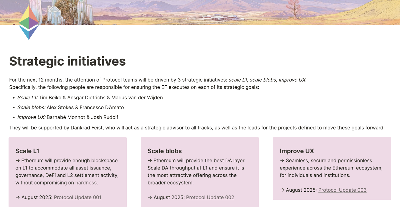 Instead of scattered updates across client teams and individual researchers, the EF created a dedicated group with clear accountability and three strategic pillars: Scale L1, Scale Blobs, and Improve UX.