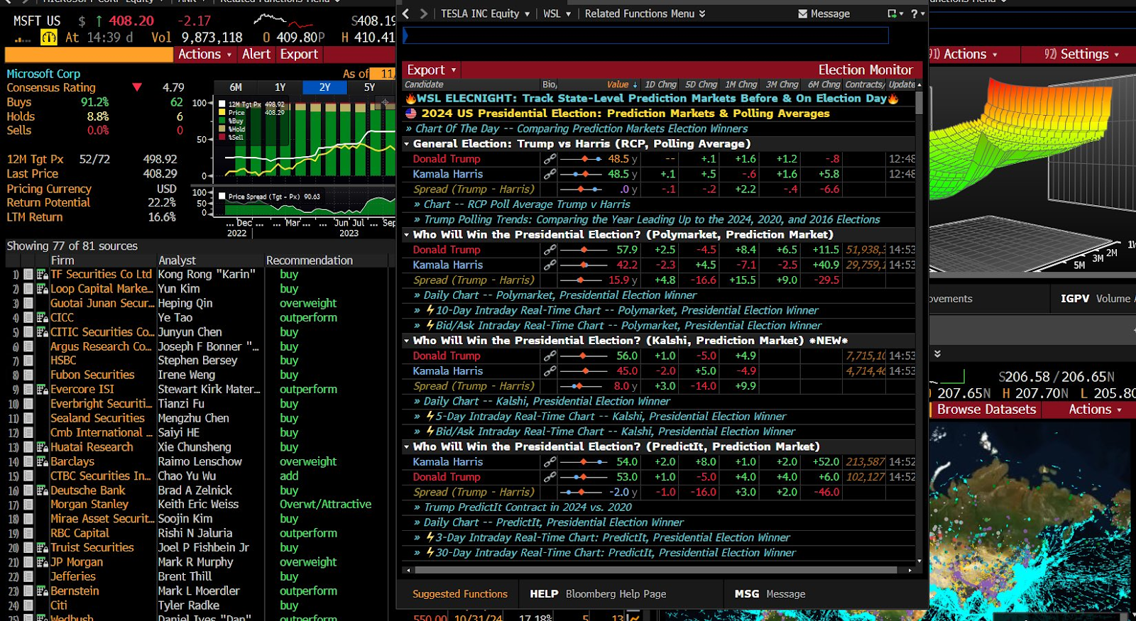 Bloomberg Terminal embedding Polymarket and Kalshi prediction markets