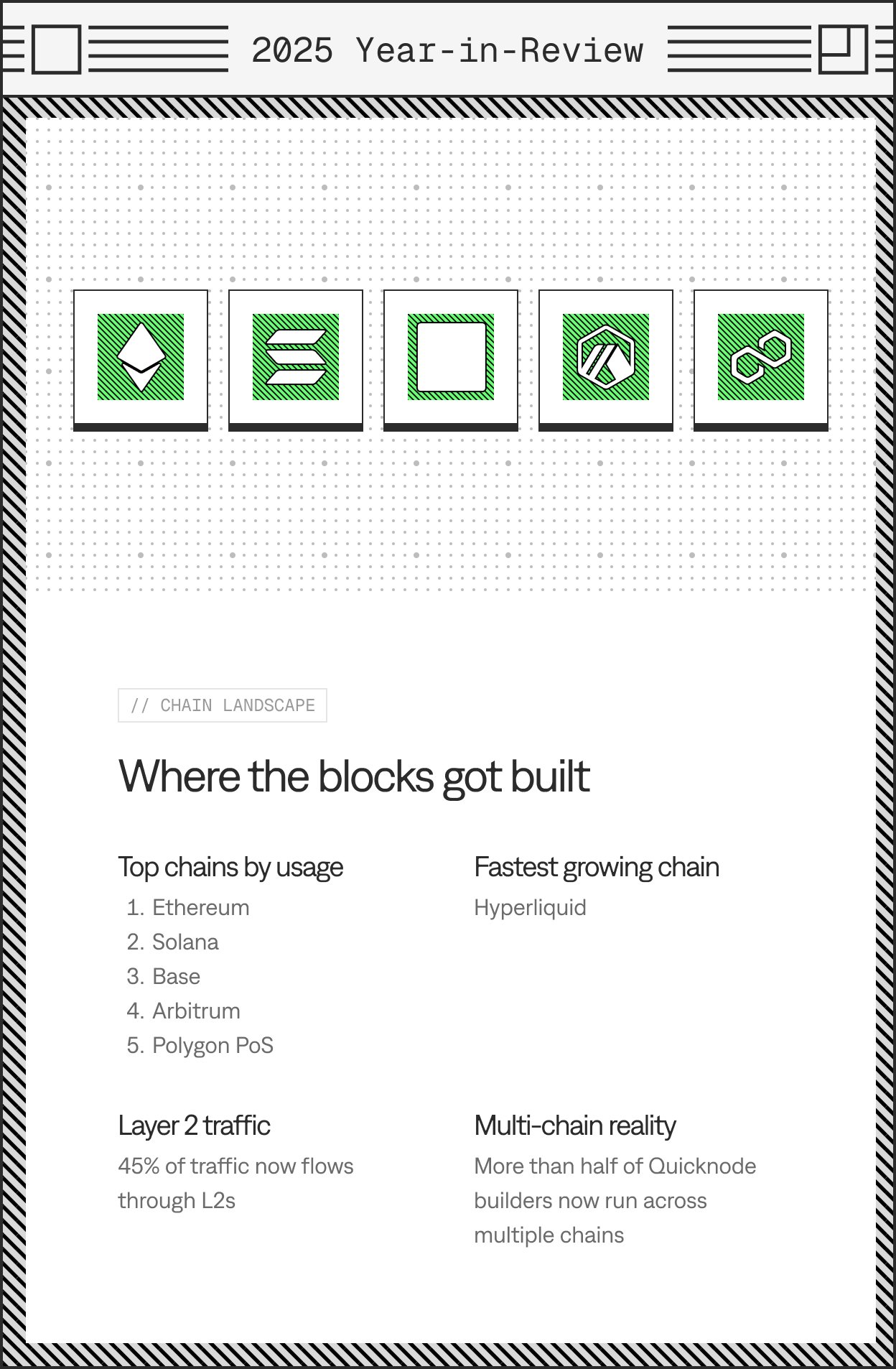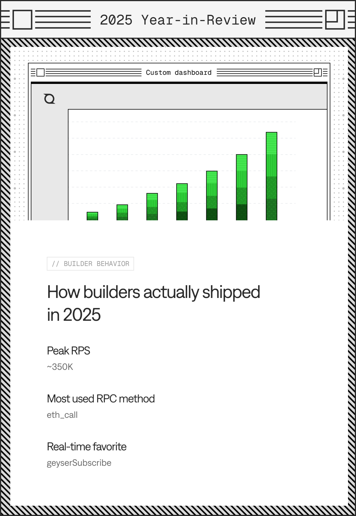 This post looks back at what that shift looked like in practice, using Quicknode’s 2025 usage data to highlight how builders shipped, where activity concentrated, and how infrastructure scaled to support it.