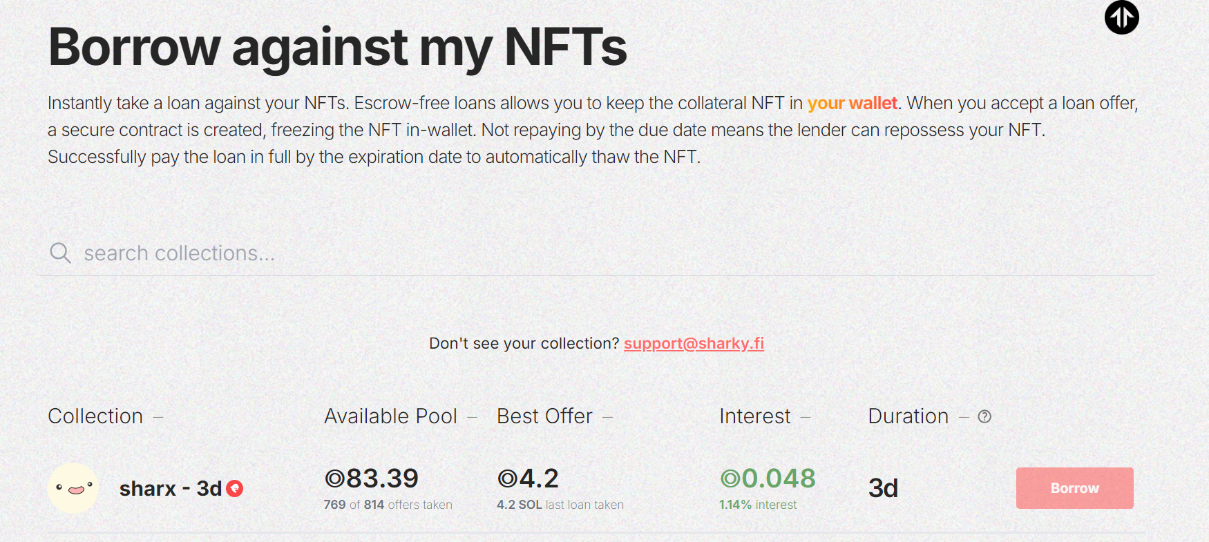 Sharky.fi launched in March 2022 on the Solana blockchain. It innovatively integrates DeFi by allowing loans against NFTs or using NFTs as collateral, enhancing liquidity and accessibility within the NFT market.