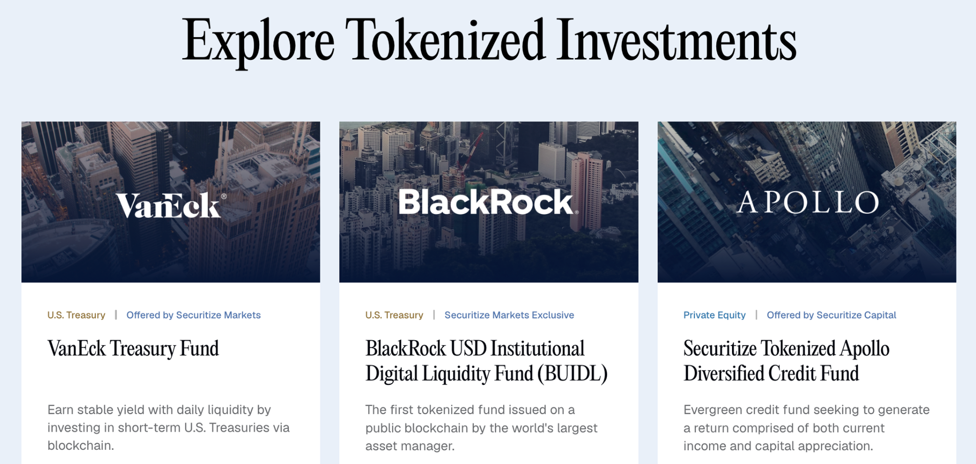 Securitize investors, primarily, receive shares in tokenized funds and not direct equities.