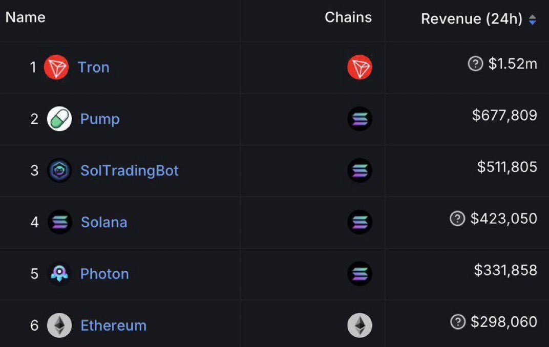 On August 19th, Tron topped the DeFi revenue charts with a total of $1.52 Million, outperforming Solana and Ethereum.